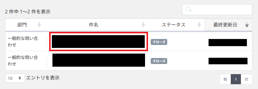 3.履歴が表示されるので、問い合わせ内容を確認したい場合は、件名をクリック